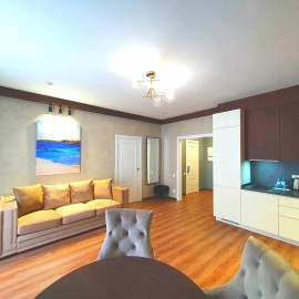 В продаже элитный апартамент в центре поселка Эстосадок! Планировка: выделенная спальня и кухня гостиная. В номере: теплые полы, шумопоглащающие стеклопакеты, балкон. Полностью оборудован для жизни всем необходимым. В комплексе Два лифта, кафе, баня, в зоне отдыха...