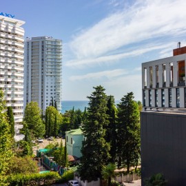 Элитный жилой комплекс с интересной архитектурой, построен на улице Черноморской, в нижней части престижного микрорайона Светлана Золотой треугольник г. Сочи. До моря 100 метров. Дом оснащен двумя современными лифтами Otis, первый этаж жилого комплекса отведен под бассейн,...
