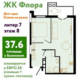 СРОЧНО Продам квартиру в ЖК ФЛОРА общей площадью 35.40м2 ЖК - Флора строится по фз-214, первая очередь сдана, можно заходить на ремонт. Очень крутой проект , с развитой , новой инфраструктурой. Литер 7, вид река . Любой вид расчетов. Более подробная информация по телефону, видео...