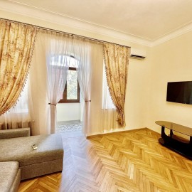 Сталинка в самом сердце города Сочи! Статус - квартира, полная стоимость в договоре, любая ипотека! Важно - МОНОЛИТНЫЕ перекрытие! Квартира спланирована в 2 отдельные спальни, кабинет и огромную кухню гостиную. Новый, качественный ремонт, мебель и техника! Центр города! пешая...