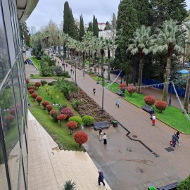 Ищу людей, которые хотят жить в Сочи. Шестиэтажное здание расположено недалеко от железнодорожного вокзала, морского порта и центральной набережной города. На главной пешеходной курортной улице Центрального района Сочи на ул. Навагинской - сорокалетние пальмы...