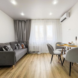 Просторная двухкомнатная квартира Дизайнерский ремонт Большая кухня-гостинная Вся техника и мебель новая Две изолированные комнаты Совмещенный сан.узел Спортиные площадки , много места для прогулок с детьми , магазины , барбер шопы . В пешей доступности детские сады ,...