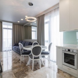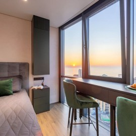 В продаже шикарная квартира в жилом комплексе Виктория Общая площадь - 42 кв.м Распланирована в кухню-гостиную, изолированную спальню, гардеробная и совмещенный санузел. В квартире выполнен качественный дизайнерский ремонт. Панорамное остекление с видом на море. Жилой...