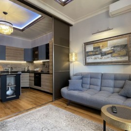 Стильная и светлая квартира в продаже! Модный и презентабельный вариант с двумя комнатами на третьем этаже 10-этажного дома площадью 46.50 кв.м. Квартира имеет гардеробную комнату, просторную кухню-гостиную и уютную спальню. Красивейший панорамный вид на город и горы, что...