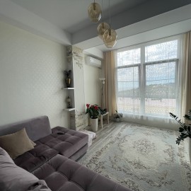 Уютная 1-комнатная квартира с прекрасным видом на море и город. В квартире есть все для комфортной жизни. В комнате имеется 2-спальная кровать, телевизор, стол и стеллаж. В кухне расположен раскладной диван, встроенный кухонный гарнитур, вся техника встраиваемая...