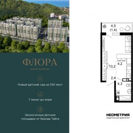 Продается квартира в ЖК «Флора» от федерального девелопера «Неометрия». Это жилой комплекс комфорт-класса в самом зеленом районе Сочи. При проектировании постарались максимально сохранить окружающую флору и фауну. Теплое море, горы, целебные источники, река, близость...