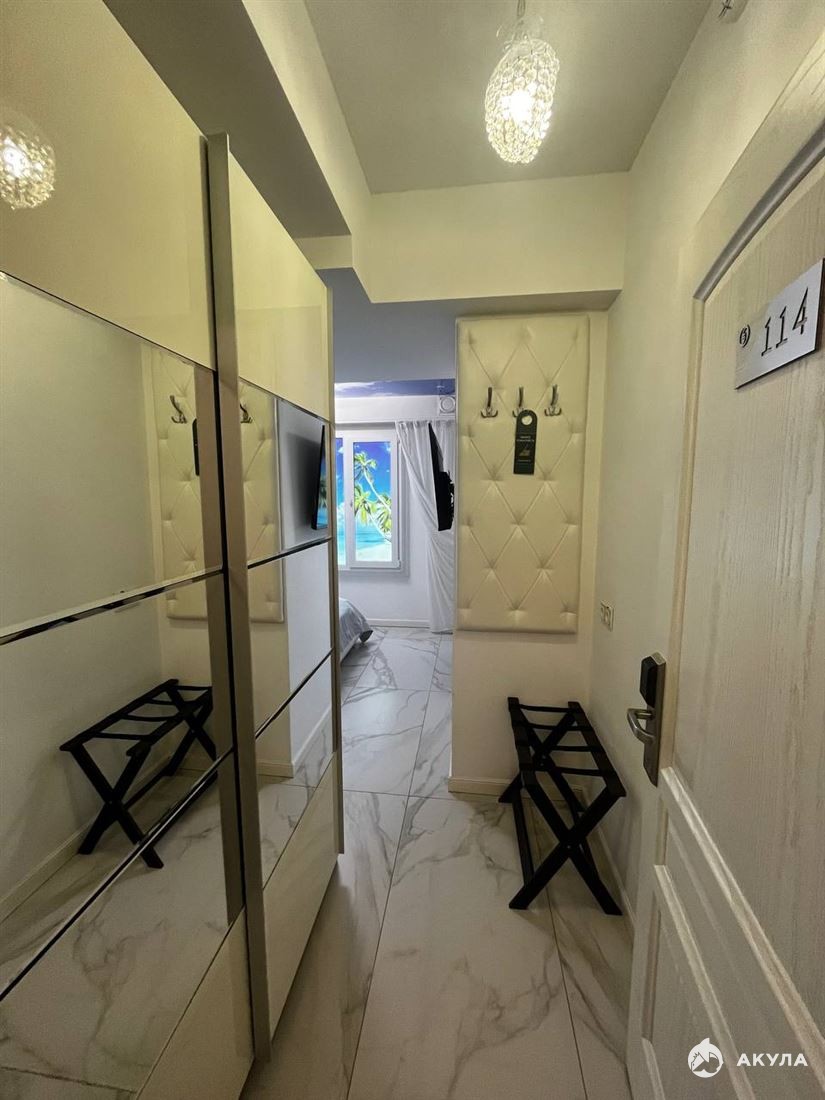 Прекрасные апартаменты с мини-кухней, телевизором, кондиционером, есть все для прекрасного проживания и отдыха : холодильник, чайник, большая двуспальная кровать , гардеробная для хранения одежды и т.д.