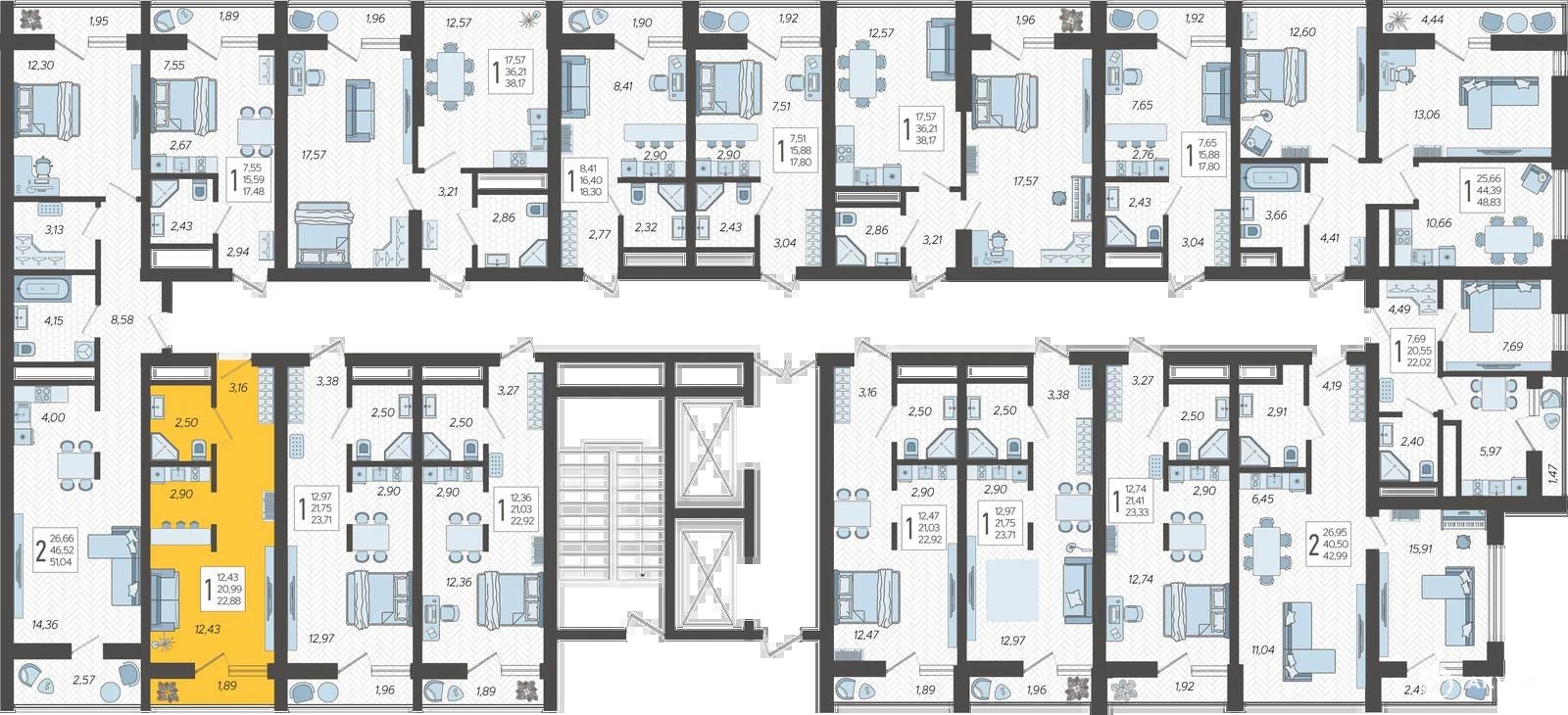 Продается студия в новостройке ЖК "Кислород" Литер 12. Общая площадь квартиры - 22.88 кв. м., этаж 13 из 19. Без отделки, но с возможностью заказать отделку.