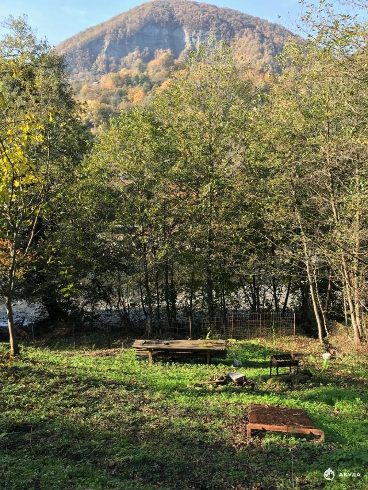 Сочи, ул. Джапаридзе, левая сторона реки Сочи, последний примыкающий участок к воде, в верховьях реки, полноводной ледниковой водой, не подтопляемый, сад персики, яблоки, черешня, вишня, фундук, виноград, мушмула, барбарис, земляника, фейхоа, подснежники, папоротник, вокруг лес, нацпарк, воздух альпийских лугов пьянит, температура на 7 градусов ниже, чем в городе Сочи, делает место уникальным, нет зноя.