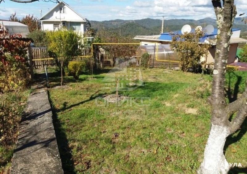 С потрясающим видом на горы, ровный, с молодым садом, на участке есть старенький домик, свет, вода, газ. Есть разрешение на строительство на 800 кв.м.
