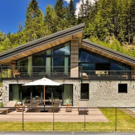 Продам современный дом в стиле шале с панорамными окнами, 2 балконами и террасой, и видом на горы. Новый двухэтажный дом современной архитектуры. Фасад выполнен в сочетании дерева и декоративного камня, большие панорамные окна дают максимум света - дом выглядит эффектно....