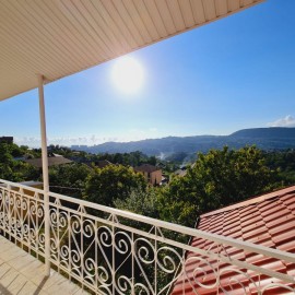 Дом с панорамным видом на горы Дом 280м2 3 этажа Земля 5 соток 1 этаж : Кухня - Столовая, Гостиная с камином , Спальня , Санузел, Балкон; 2 этаж : 3 Спальни , Санузел , Гардеробная; -1 этаж : две студии с санузлами; Сад : фруктовые и декоративные деревья и растения. Летняя беседка с...
