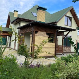 Современный коттедж в стиле "шале", построенный по индивидуальному архитектурному проекту. Дом распланирован. Общая площадь 140 кв.мс балконами. Площадь участка 5.5 соток. Первый этаж: прихожая, санузел, гардеробная, спальня, кухня-гостиная с выходом на террасу. Второй этаж: 3...