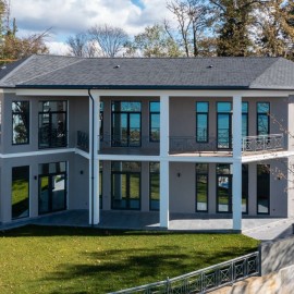 Двухэтажный коттедж. Индивидуальный проект. На первом этаже расположены просторная гостиная, столовая и кухня, санузел, подсобное помещение, гостевая спальня с отдельным входом со своими гардеробной и санузлом. На втором этаже: главная спальня со своими гардеробной и...