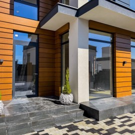 Площадь дома составляет 165 кв.м. эксплуатируемая кровля 85 кв.м. с подведенными коммуникациями для летней кухни и джакузи место под джакузи будет организовано. Внешняя отделка выполняется из вентилируемого фасада композитными панелями Алюкобонд. Внутренняя Отделка —...