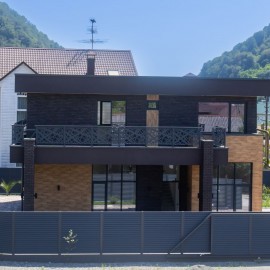 Дом в современном стиле в коттеджном поселке комфорт класса. Площадь составляет 250 кв.м., внутри предчистовая отделка. Эксплуатируемая крыша. Из дома открывается красивый вид на горные вершины и лесной массив. Коммуникации: электричество, водоснабжение центральные,...