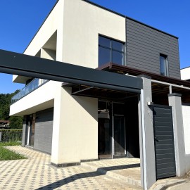Дом с предчистовой отделкой. На первом этаже предусмотрено место для: кухня гостиная, небольшой кабинет. Второй этаж: три спальни, выход на террасу с шикарным видом на горы. Гараж под одной крышей с домом. Дома строятся из качественных материалов. Территория поселка...