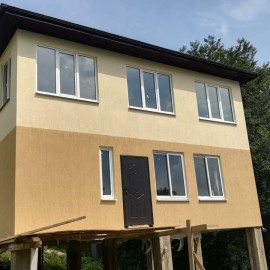 Дом в современном стиле, расположен в черте города, с прямым видом на море. В доме 3 спальни, 2 санузла, просторная кухня-гостиная с выходом на террасу. Монолитный каркас, заполнение керамзито-бетонные блоки. Под домом 16 свай, глубиной забуривания 9 метров, до залегания...