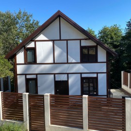 Коттедж площадью 250 кв.м., премиум-класса, расположен в предгорье, в стороне от городской суеты, имеет свою атмосферу надёжности, спокойствия и единения с природой. Фасад дома выполнен с использованием широкоформатного керамогранита Kerama Marazzi премиальная серия Wood,...
