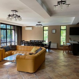 Площадь дома составляет около 300 кв.м. Дом монолитно-блочный, построен с соблюдением всех строительных норм и с учетом особенностей рельефа местности. Во всем доме выполнен ремонт, установлена вся мебель и техника. Из открывается красивый вид на горные вершины и лесной...