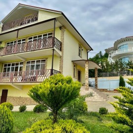 Продается коттедж 270м2 с ремонтом, мебелью и техникой в одном из экологически чистом и развитом районе - Хоста Панорамный вид на море и город с каждого этажа .3 спальни 2 с/у кухня гостиная с выходом на террасу, с которой открывается потрясающий вид на море, город и...