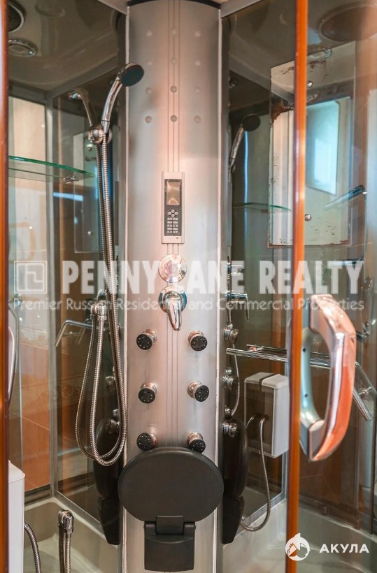 В ванной есть сушилка для белья, теплый пол, фен, стиральная машинка, ванна, душевая кабина, шампунь, полотенца, туалетные принадлежности