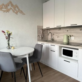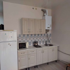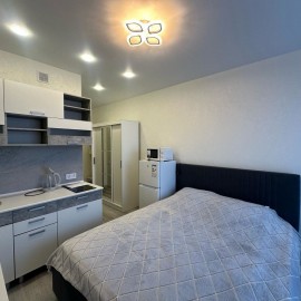 Уютная студия в ЖК "Райский уголок" есть все необходимое, на крыше дома расположена зона отдыха и барбекю для жильцов, во дворе большая парковка, детская площадка, магазин, парикмахерская. Рядом конечная остановка 104 автобуса.