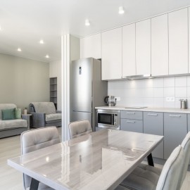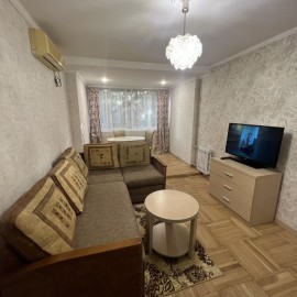 Арт. 89139720. Презентабельный дом бизнес-класса! Огороженная территория. Консьерж. Видеонаблюдение. Большая, уютная квартира после ремонта. Кухонный гарнитур под единой столешницей с газовой плитой и духовкой, 2-х камерный холодильник, большой раскладной диван, ЖК телевизор и...
