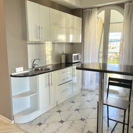 Арт. 89612429. Светлая, чистая квартира с балконом и видом на море и горы. Панорамные окна в пол во всей квартире. В 5 минутах парк Ривьера, Магнит, внизу дома продуктовый магазин. Консьерж на первом этаже. Новый дом и чистый подъезд. Новый холодильник, матрас, кондиционер. Вся...