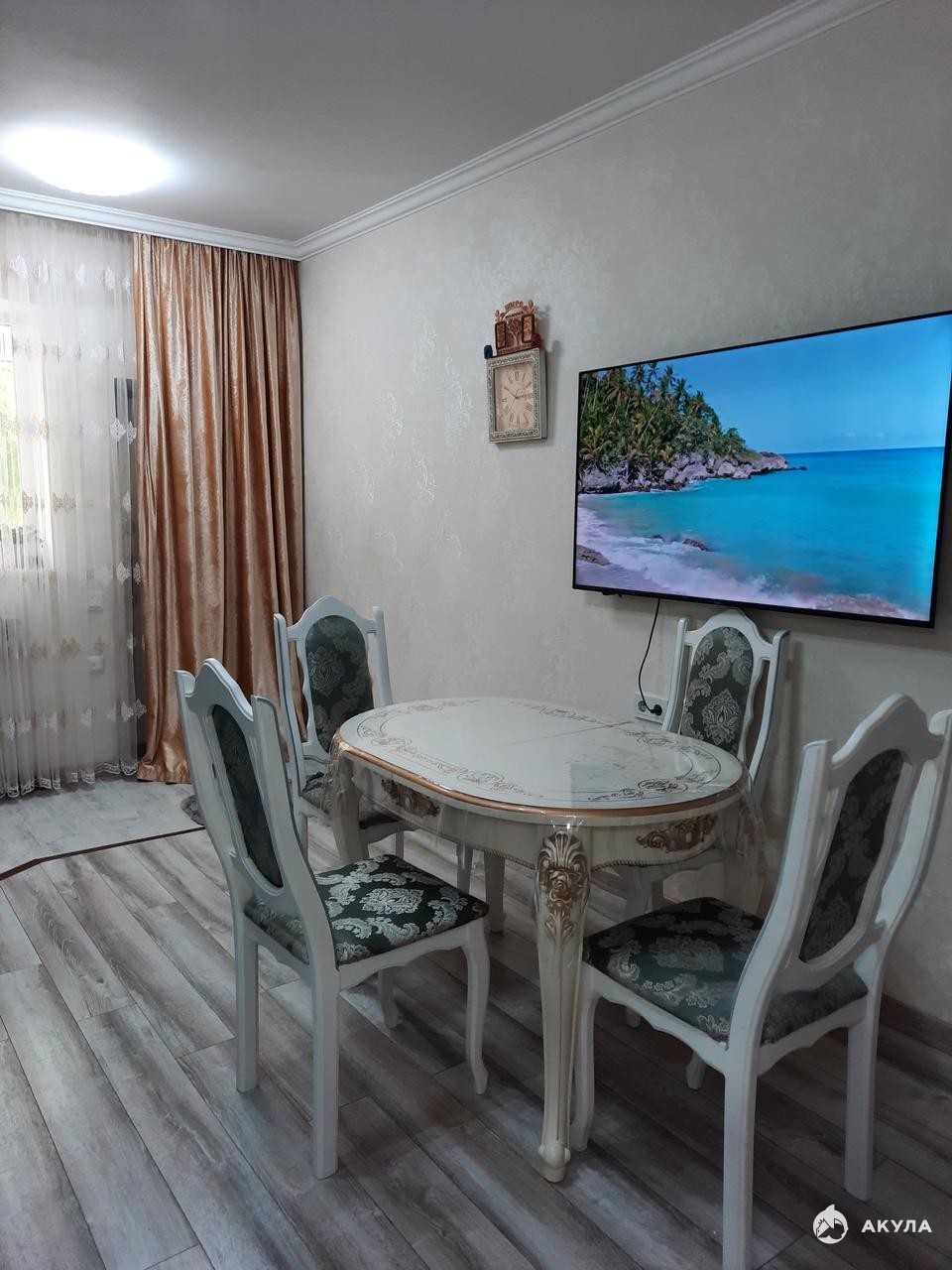 О КВАРТИРЕ: ✅ Планировка - большая кухня-гостиная и изолированная спальня, санузел, балкон ✅ Двухспальная кровать, диван, кухня, холодильник, стиральная машина, кондиционер, телевизор, микроволновая печь, большой шкаф, душ. ✅ 2 этаж, площадь 42 кв.м.