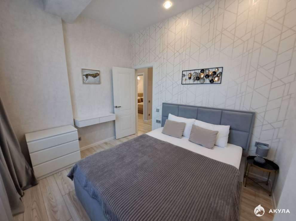 Комфортная квартира 50 кв.м с двумя спальнями, кухней-гостиной, и балконом. Квартира со свежим дизайнерским ремонтом, мебелью и техникой. Расположена в новом жилом комплексе с удобной транспортной развязкой.