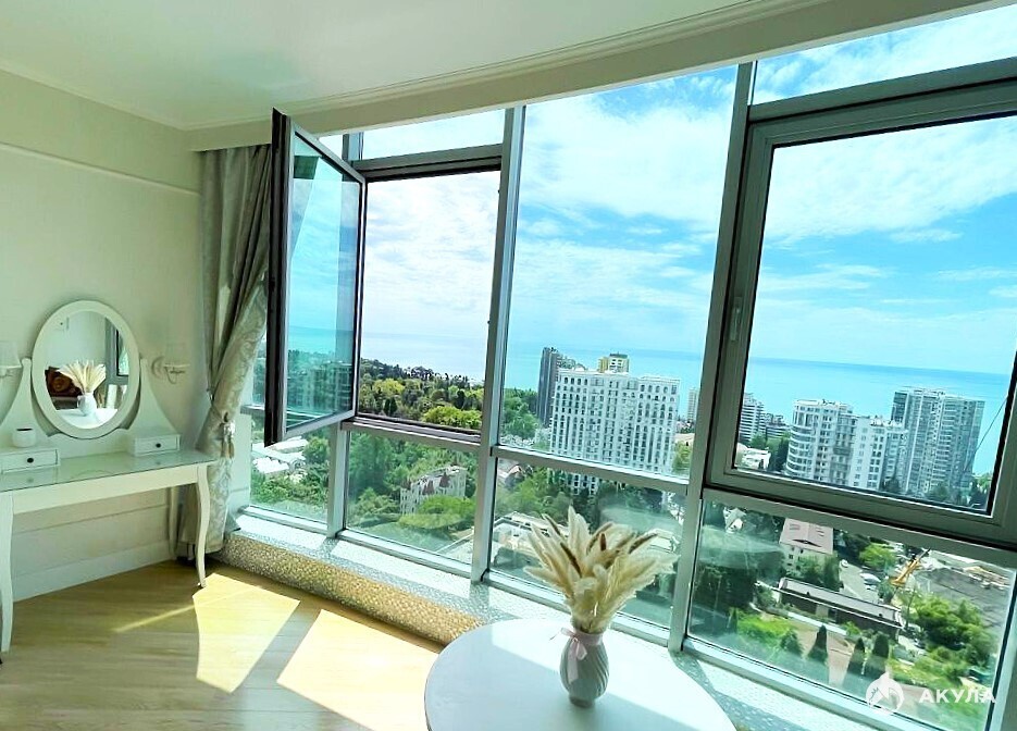 Арт. 88985179. Презентабельный дом бизнес-класса в центре города Сочи в мкр. Светлана! Большая двухкомнатная квартира с панорамными окнами с видом на море после дорогого дизайнерского ремонта. Кухня с итальянским кухонным гарнитуром под единой столешницей с варочной панелью, 2-х камерный холодильник, посудомоечная машина, два белых раскладных дивана, ЖК телевизор. В спальне кровать с ортопедическим матрасом, шкаф, ЖК телевизор. Кондиционеры. Подогрев пола. Дизайнерское освещение. Отличная инфраструктура. Рядом магазины, кафе, садики, школы и все достопримечательности центра города. До моря 10 минут пешком. Показы оперативно в любое удобное для ВАС время. Людмила