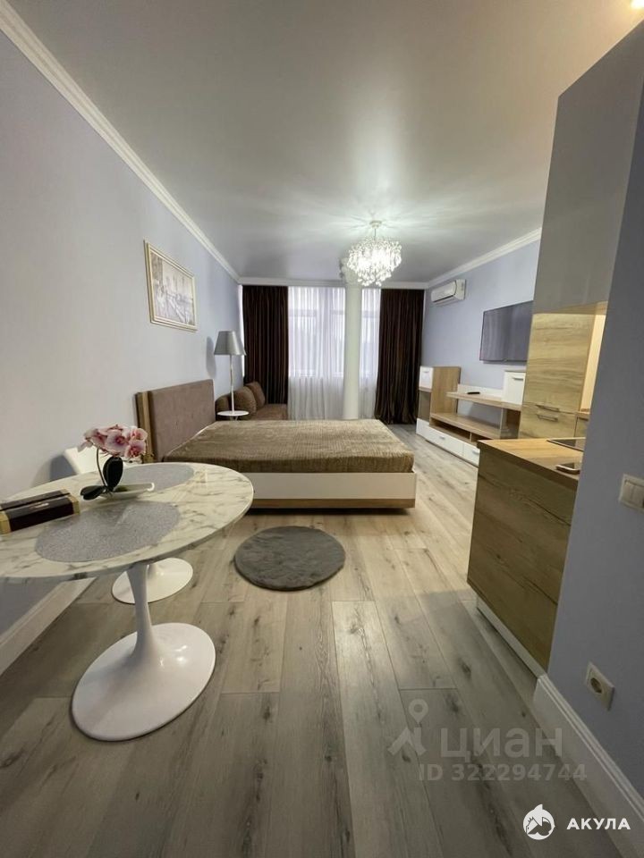 Арт. 89127225. Презентабельный дом бизнес-класса! Огороженная территория. Консьерж. Видеонаблюдение. Большая, уютная квартира-студия после дорогого дизайнерского ремонта. Гостиная совмещена с кухней студийного типа. Новый кухонный гарнитур под единой столешницей с варочной панелью, 2-х камерный холодильник, большая кровать, ЖК телевизор. Кондиционер. Подогрев пола. Дизайнерское освещение. Отличная инфраструктура. Рядом магазины, кафе, садики, школы и все достопримечательности центра города. До моря 10 минут пешком. Сдается квартира до 1 июня.
